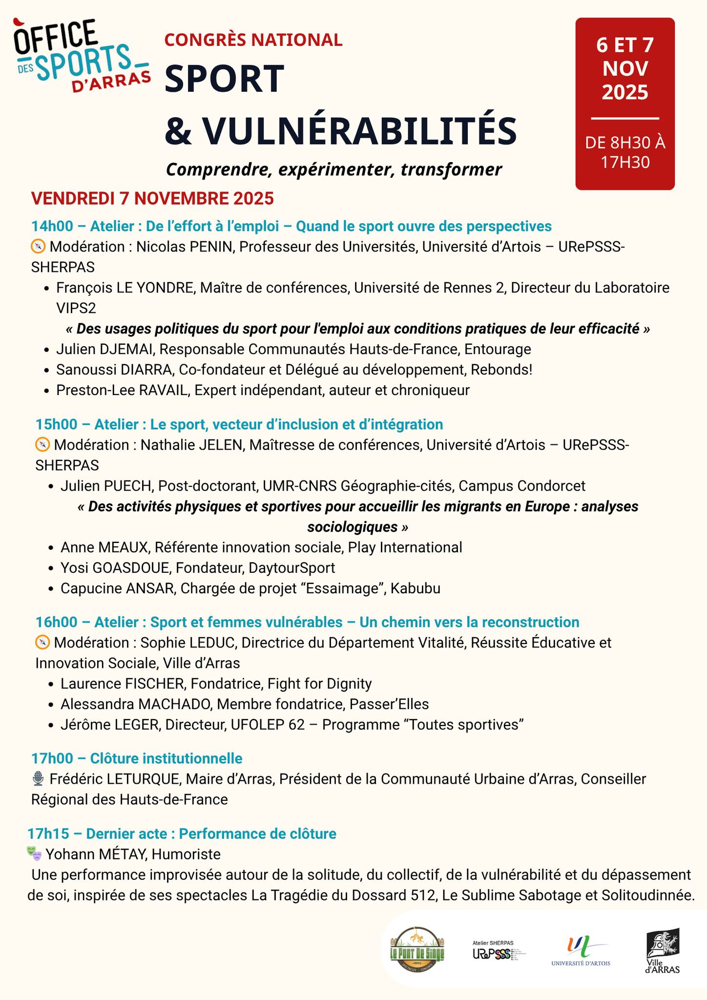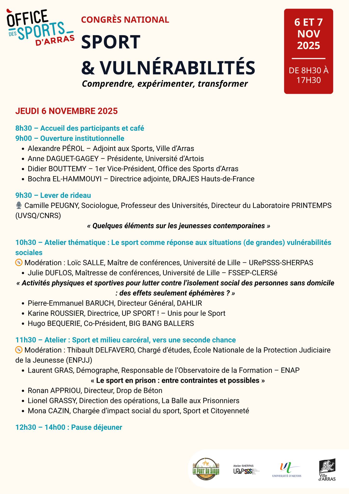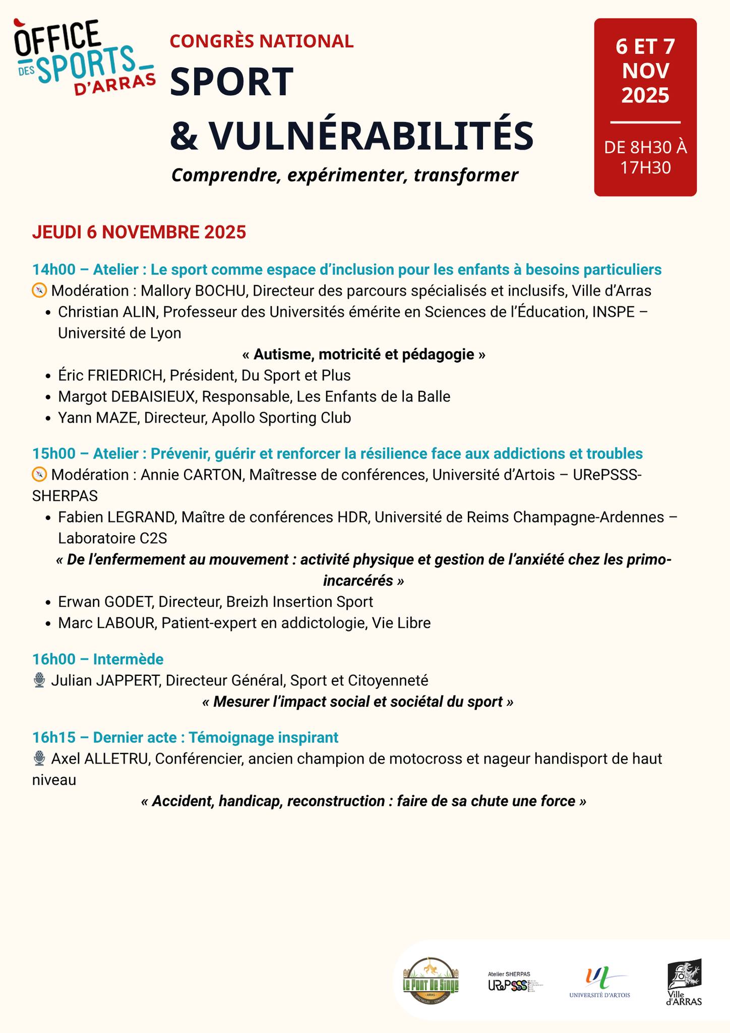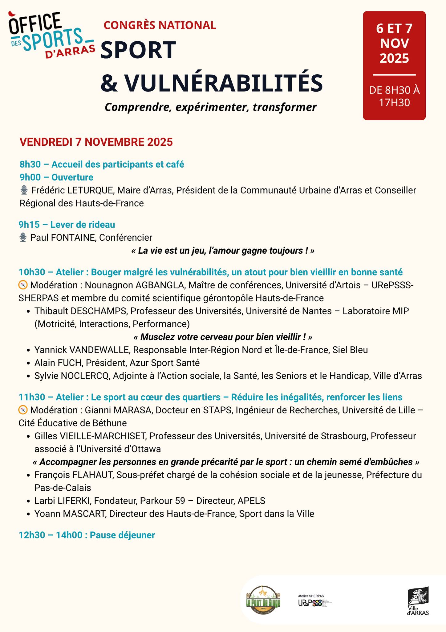 Congrès National « Sport et Vulnérabilités » – Arras, 6 et 7 novembre 2025