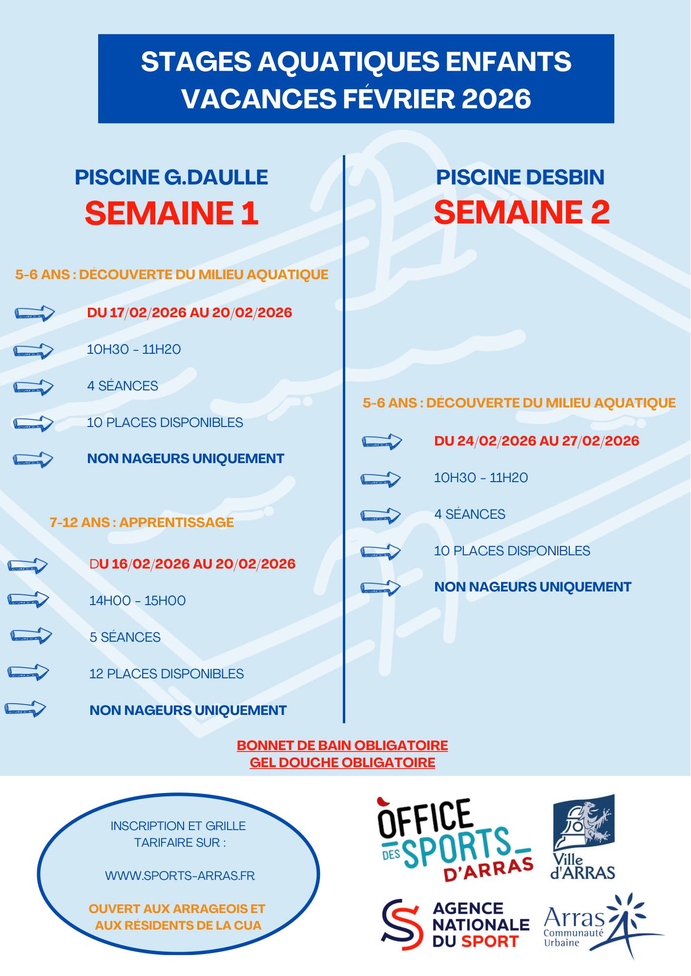 Vous pouvez vous inscrire sur la liste d’attente en cliquant sur le lien suivant : https://sports-arras.fr/liste-dattente-stages-aquatiques-fevrier-2026/